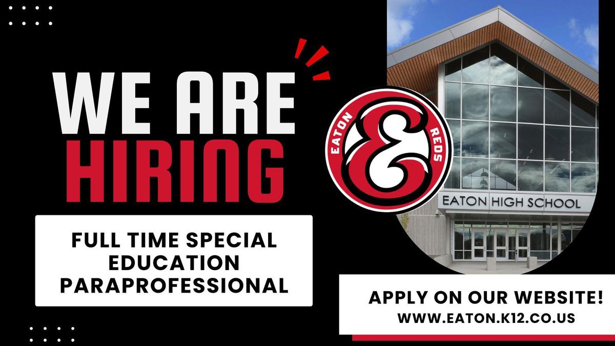 Eaton High School is hiring a Full-Time Special Education Paraprofessional—join our team and make a meaningful difference in students’ lives every day.